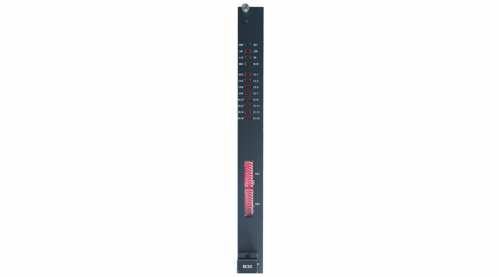 M35板卡提供靈活的交換網絡,可以實現任意E1之間任意64k信道的無阻塞全交叉連接,具有對隨路信令(CAS)處理能力,可以通過線路提取同步時鐘、或設備內部產生同步時鐘。